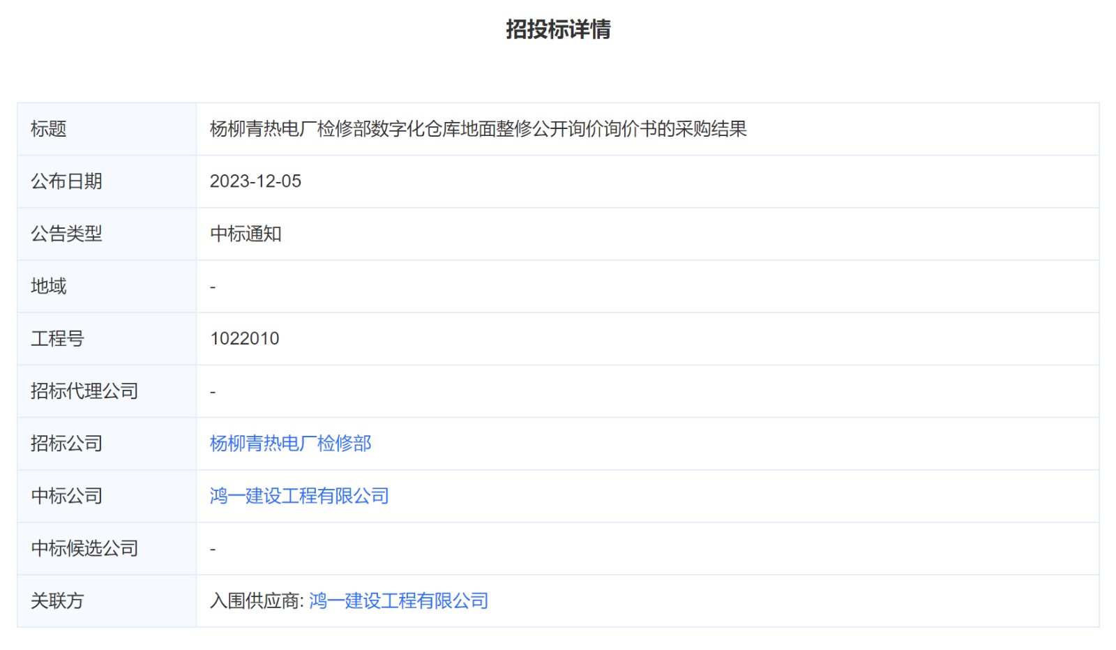 杨柳青热电厂检修部数字化仓库地面整修公开询价询价书的